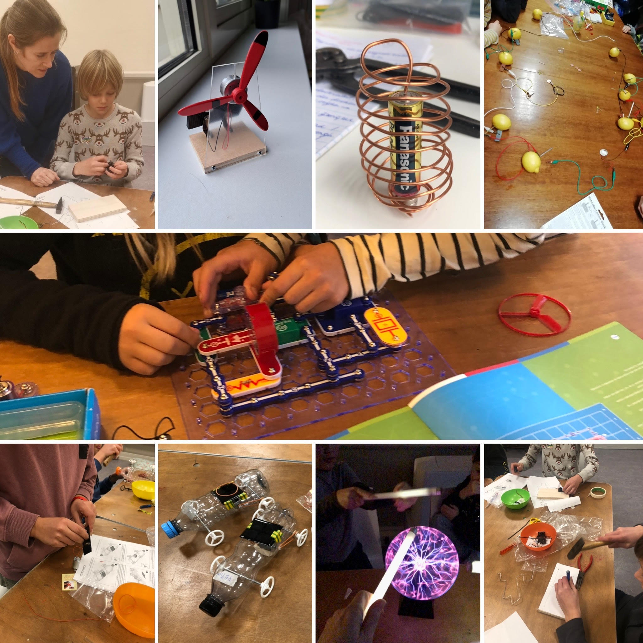 Heb je nog niet eerder iets gemaakt dat op elektriciteit werkt? Geen probleem: je werkt op je eigen niveau aan je project en we helpen elkaar verder. Daarbij ontdekken we verborgen talenten, zoals iemand die heel goed is in het strippen van elektriciteitsdraad, het verbinden van stroomdraadjes of het ontdekken waarom het stroomcircuit niet werkt.