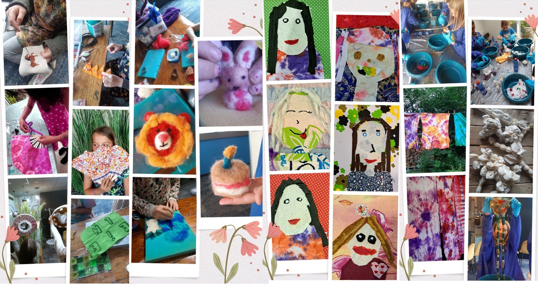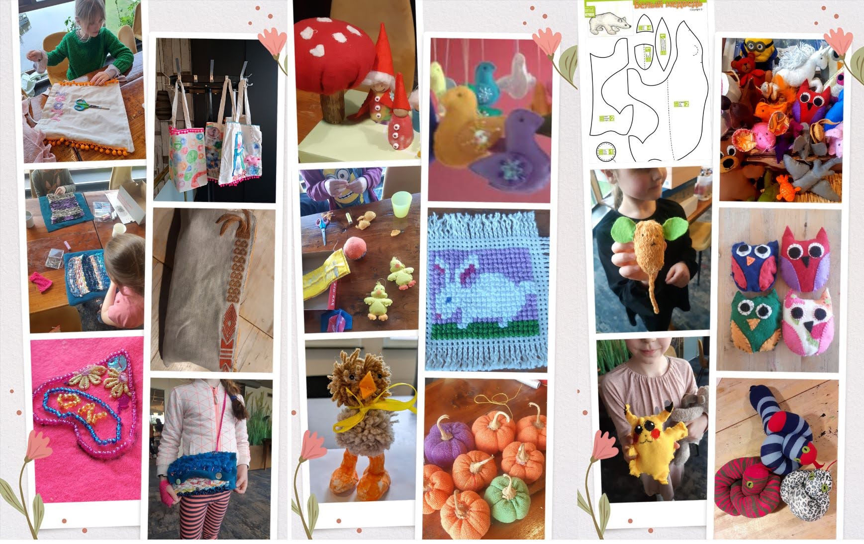 Deze cursus is een mengeling van lessen met opdrachten en een (open) atelier. Er zijn veel materialen (stof, wol, borduurgaren, vilt, kralen en pailletten etc.) en er is altijd een opdracht. Ik bedenk steeds weer nieuwe dingen en leg die voor. De meesten hebben daar dan zin in, anderen willen iets anders. Dit kan zijn, omdat ze zelf een plannetje hebben bedacht, het kan ook zijn dat ze nog met een andere opdracht bezig zijn (wat later in de cursus) of het kan zijn dat ze de cursus al eerder hebben gedaan.